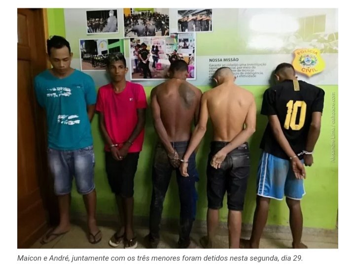 Maicon e André, juntamente com os três menores foram detidos nesta segunda, dia 29.
