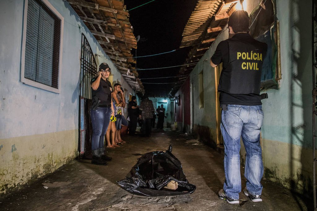 Na foto, um jovem foi executado dentro de casa, por dois homens que chegaram em uma moto, no município de Ananindeua, na Grande Belém – Bruno Santos/ Folhapress.