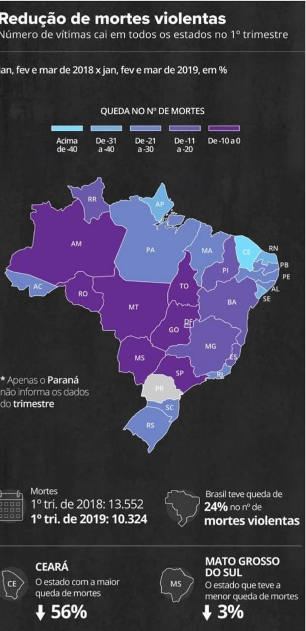 A razão que explica a tendência à reduções expostas pelos especialistas em segurança pública citados na matéria, são o compartilhamento de políticas públicas em todas as esferas, interesses mútuos entre os governos e facções, implantação de programas estaduais de reduções a violência, pressão da opinião pública e a criação do Sistema Único de Segurança em 2018.