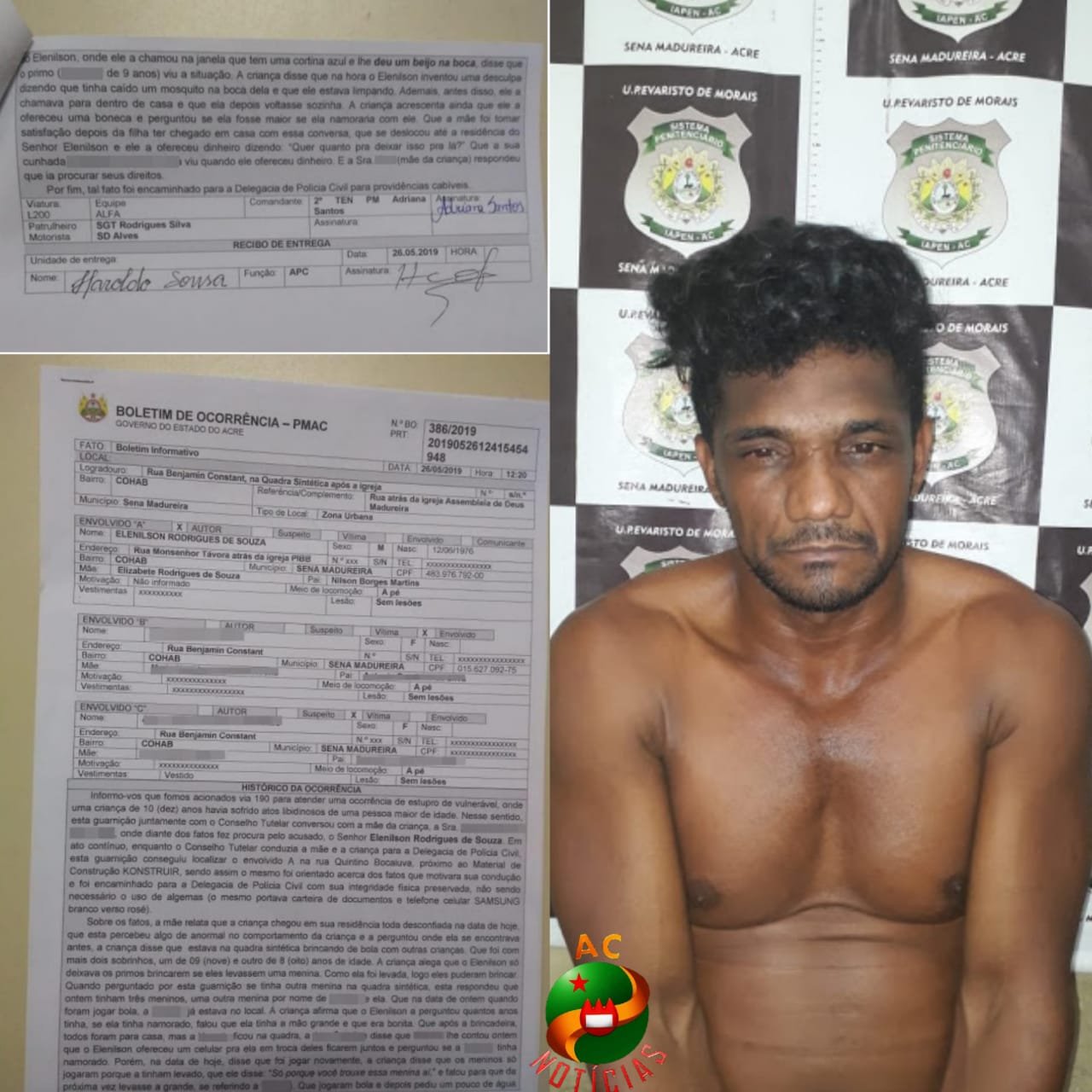 Elenilson Rodrigues de Sousa foi preso no último Domingo 25 em Sena Madueira acusado de tentar estuprar uma menor de 10 anos de idade.