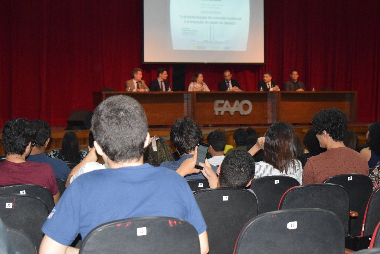 Durante o dia, Novelino discorreu sobre o tema “Curso Jurisdição Constitucional e Segurança Jurídica” e no período da noite, na faculdade, contando com a participação da classe jurídica, ele abordou o tema “A abstrativização do controle incidental e a mutação do papel do Senado”.