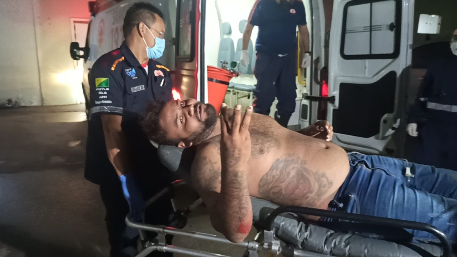 A ambulância do SAMU foi acionada, os paramédicos prestaram os primeiros atendimentos e encaminharam o ferido ao Pronto-Socorro de Rio Branco em estado de saúde estável.