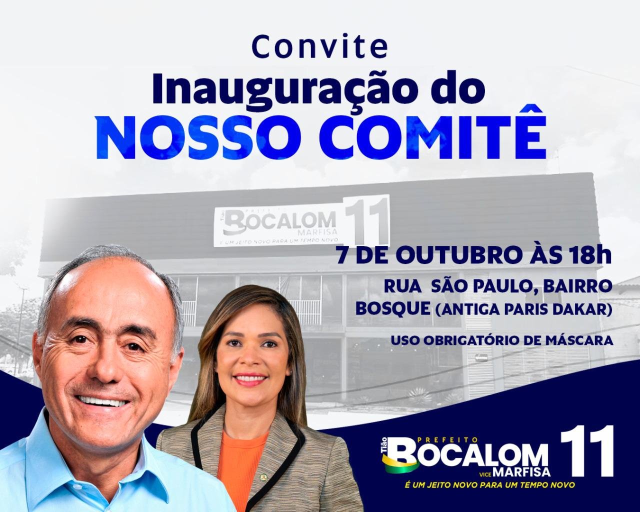 O candidato à Prefeitura de Rio Branco, Tião Bocalom (Progressistas), e a candidata à vice, Marfisa Galvão (PSD), inauguram o comitê de campanha da coligação Produzir para Empregar nesta quarta-feira, 7. O evento iniciará a partir das 18h na Rua São Paulo, no Parque da Maternidade, próximo ao Skate Parque. A organização do local e a dinâmica foram pensadas para respeitar todas as normas de saúde devido à pandemia do novo coronavírus e garantir a proteção dos apoiadores.