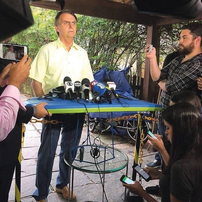 Desde que precisou sair do campo minado do primeiro turno, Bolsonaro criou uma trincheira particular, emoldurada por uma rede, daquelas usadas em guerras, combinada às cores da bandeira em contraste com a parede desbotada da sala.