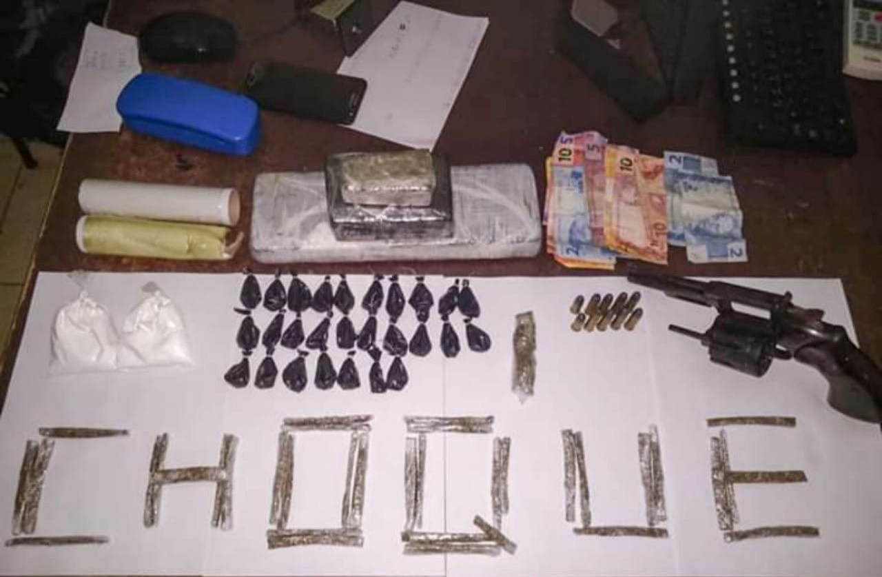 Segundo os militares, eles chegaram ao endereço após uma denúncia anônima, informando que no local haviam drogas e armas de fogo. Foram apreendidos 1,5 kg de maconha, 130 gramas de cocaína, um revólver calibre .38 e 10 munições intactas. Parte do entorpecente estava enterrado no terreno da casa do preso.