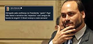 O filho do presidente Jair Bolsonaro (PSL-RJ) e vereador pelo PSC do Rio de Janeiro, Carlos Bolsonaro, compartilhou no Twitter, na manhã desta segunda-feira (16), uma lista de feitos do governo com a frase: “Obrigado pela confiança no Presidente, ‘gado’!”.