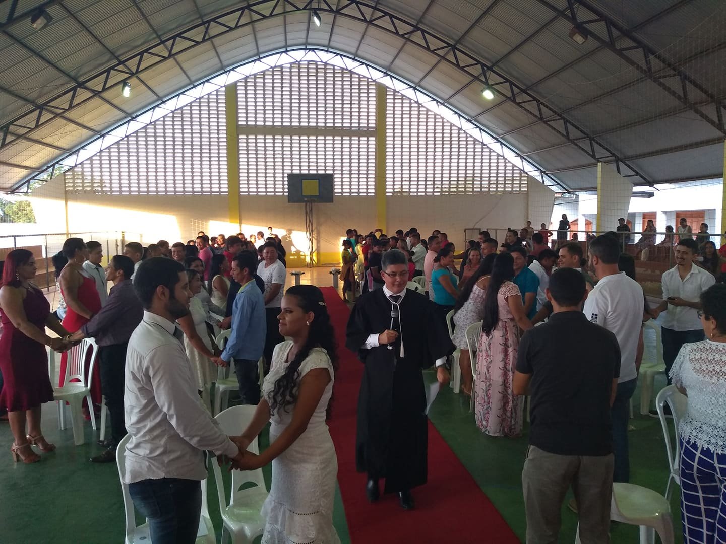 O Tribunal de Justiça do Acre, por meio do Projeto Cidadão, realizou, nesta sexta-feira, 9, o Casamento Coletivo de 49 casais, em uma bela cerimônia celebrada no ginásio da escola Severino Cordeiro em Feijó.