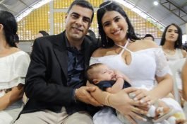 O momento mais aguardado da cerimônia foi o voto matrimonial, ocasião em que os nubentes responderam com um “sim” coletivo, aceitando publicamente a união voluntária de um homem e de uma mulher, nas condições sancionadas pelo direito.