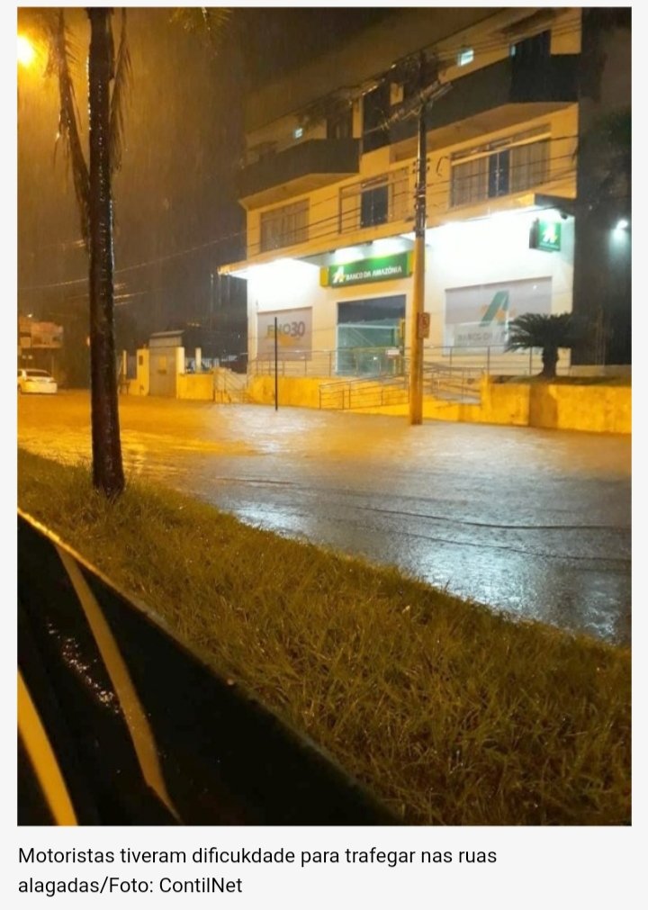 Um motorista de Uber que trabalhava na noite desta terça-feira (23) disse que teve muita dificudade para atravessar o ‘mar de água’ que se formou nas proximidades do Banco da Amazônia, localizado na Avenida Ceará. “Fiquei assustado com tanta água”, disse ao ContilNet.