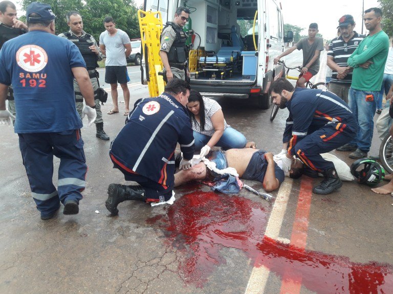 Carlos sofreu uma dilaceração na perna esquerda e perdeu muito sangue. Populares fizeram torniquete na coxa dele para estancar a hemorragia e acionaram a ambulância do suporte avançado do Serviço de Atendimento Móvel de Urgência (Samu) que prestou os primeiros socorros e conduziram a vítima em estado de saúde grave ao PS. O garupa da moto que não foi identificado foi conduzido a Unidade de Pronto Atendimento (UPA 2°Distrito) com escoriações.