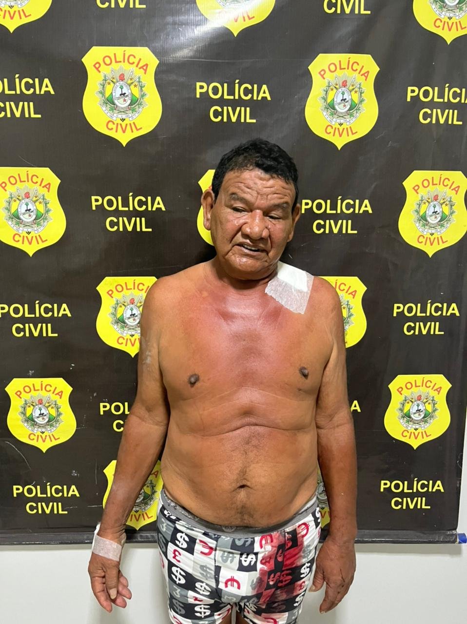Manoel de Souza Castro Nascimento, 68 anos, morador do bairro Senador Pompeu, na Rua Beira Rio, é o suspeito que teria usado uma faca tipo peixeira para esfaquear a ex-amante e o atual companheiro.