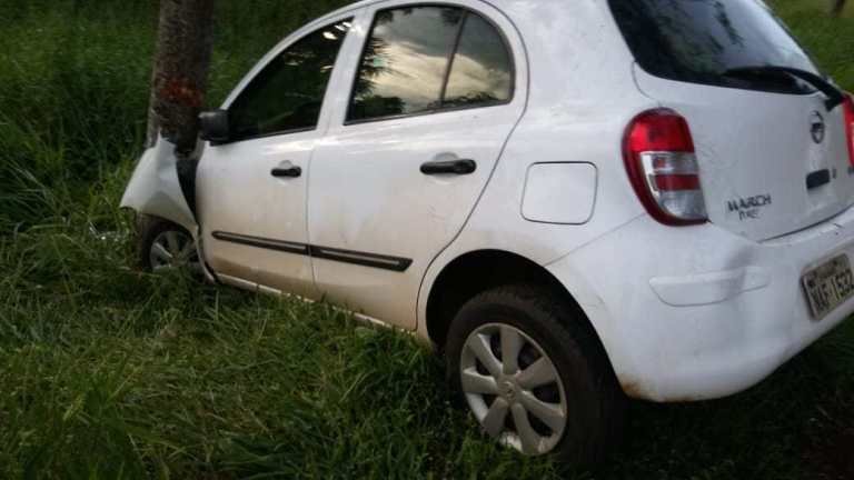 O veículo teria recebido uma forte pancada na traseira, de um outro carro que circulava na Avenida Norte em alta velocidade, e foi empurrado para cima do gramado.
