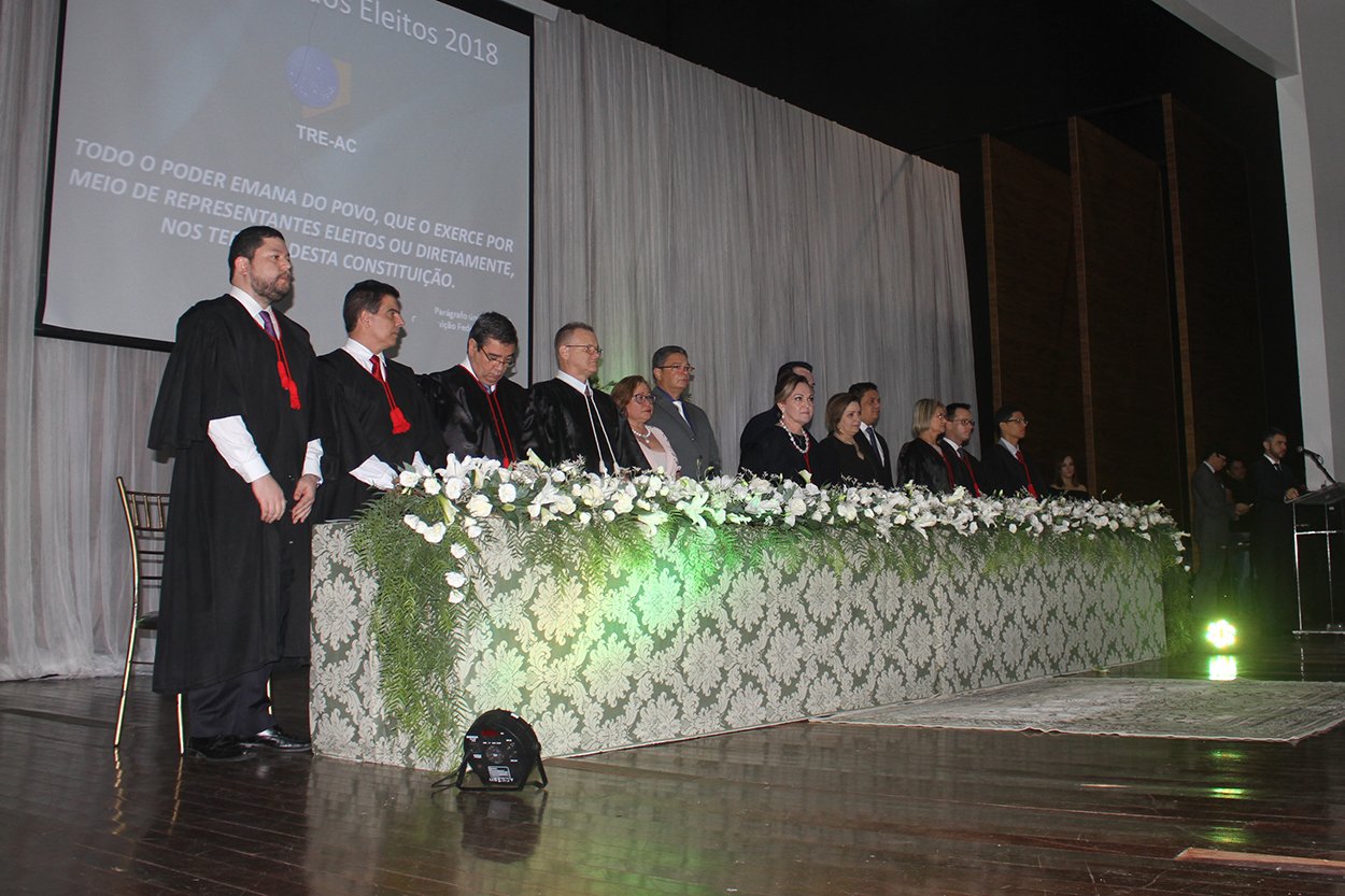 A solenidade, organizada pelo Tribunal Regional Eleitoral do Acre (TRE-AC), aconteceu no Teatro Universitário e reuniu um grande público formado por autoridades, amigos e familiares dos candidatos eleitos.