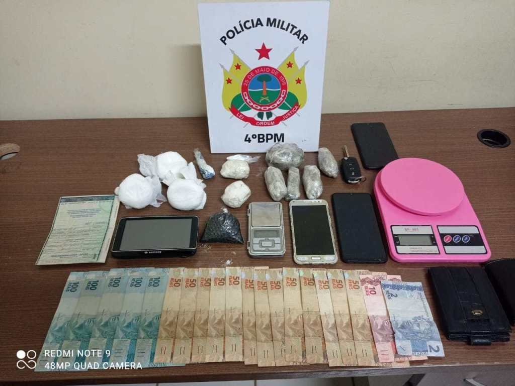 Os indivíduos transitavam em um veículo no bairro Chico Paulo II quando foram abordados. Nada de ilícito foi encontrado com os ocupantes, mas no interior do carro foram apreendidos cinco tabletes de maconha, três trouxinhas de cocaína, duas pedras de crack, balança de precisão e a quantia de R$ 1.162,00 reais.