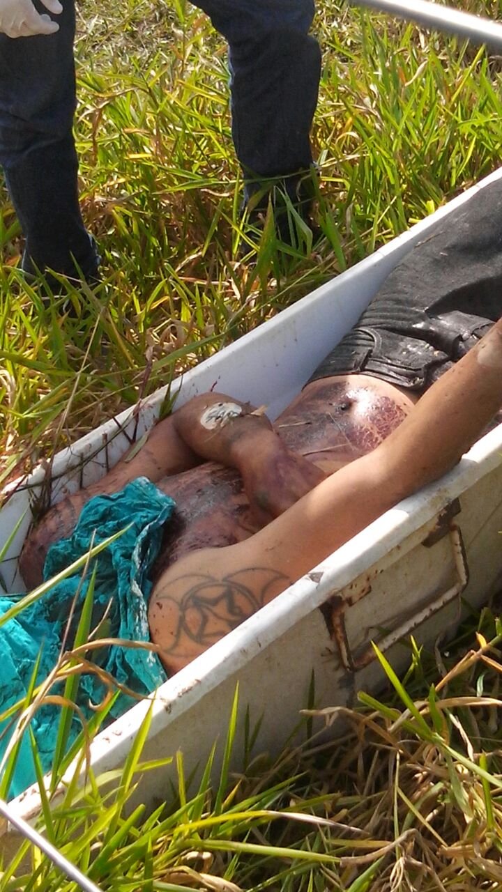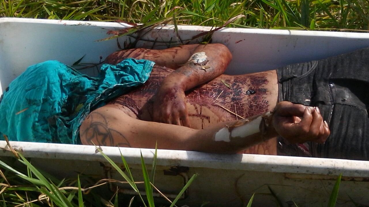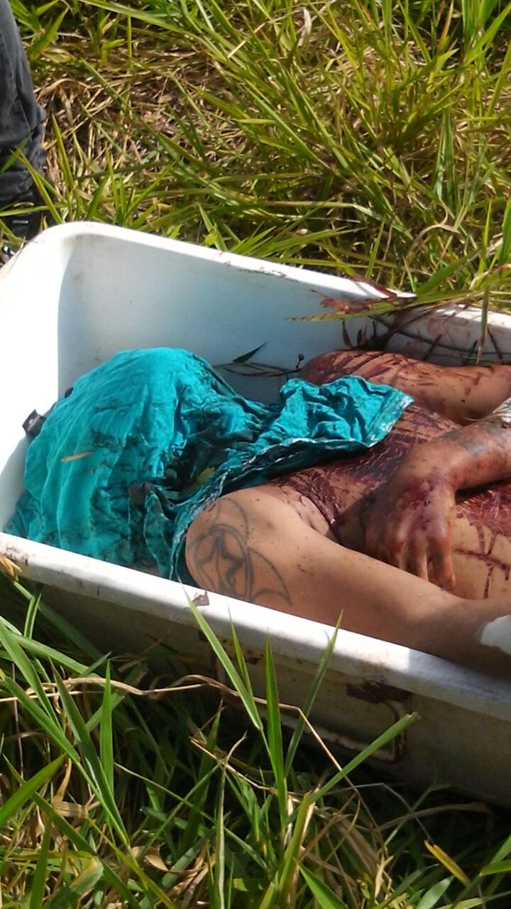 O corpo aparenta ser de um jovem, ainda não identificado, com aparência de aproximadamente 20 anos. A vítima foi visivelmente esfaqueada várias vezes e teve o pescoço cortado.