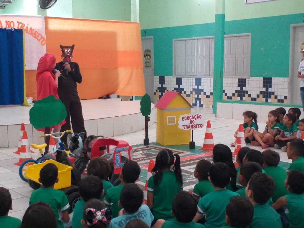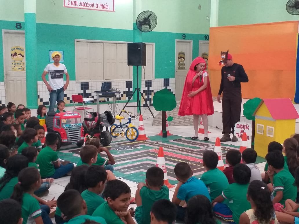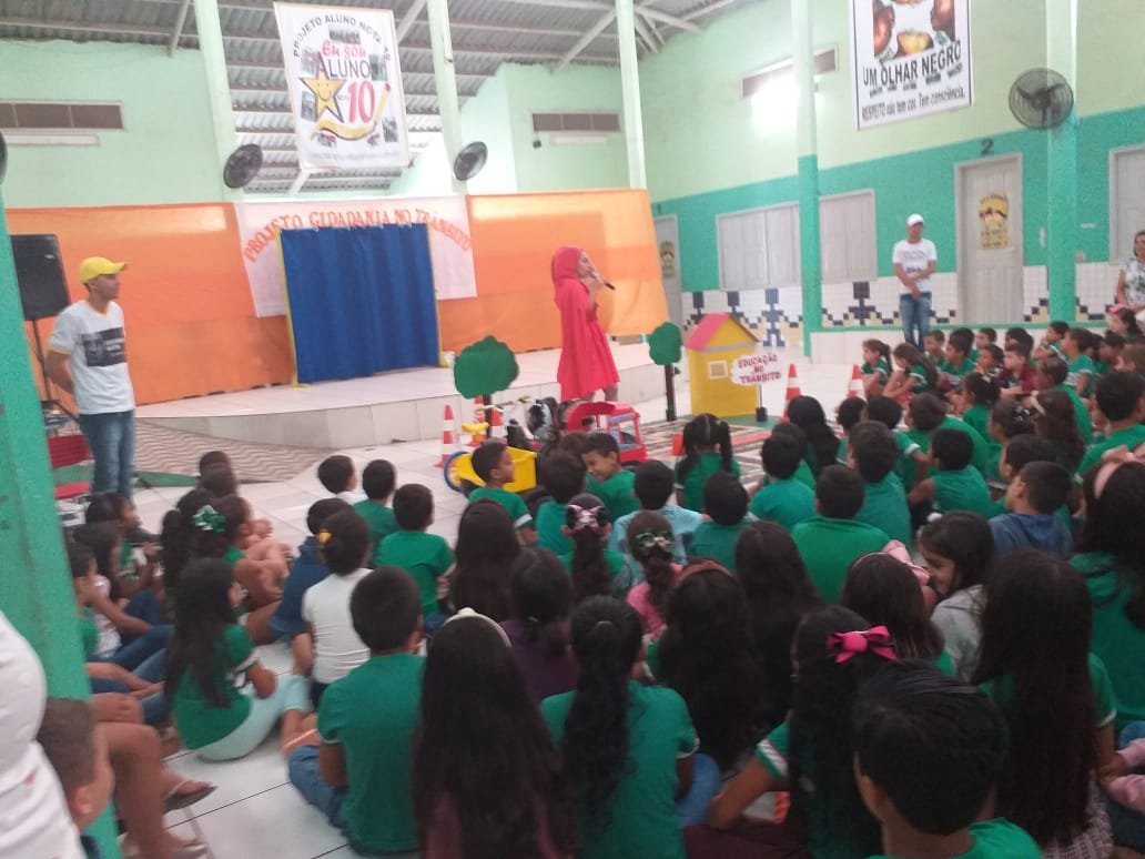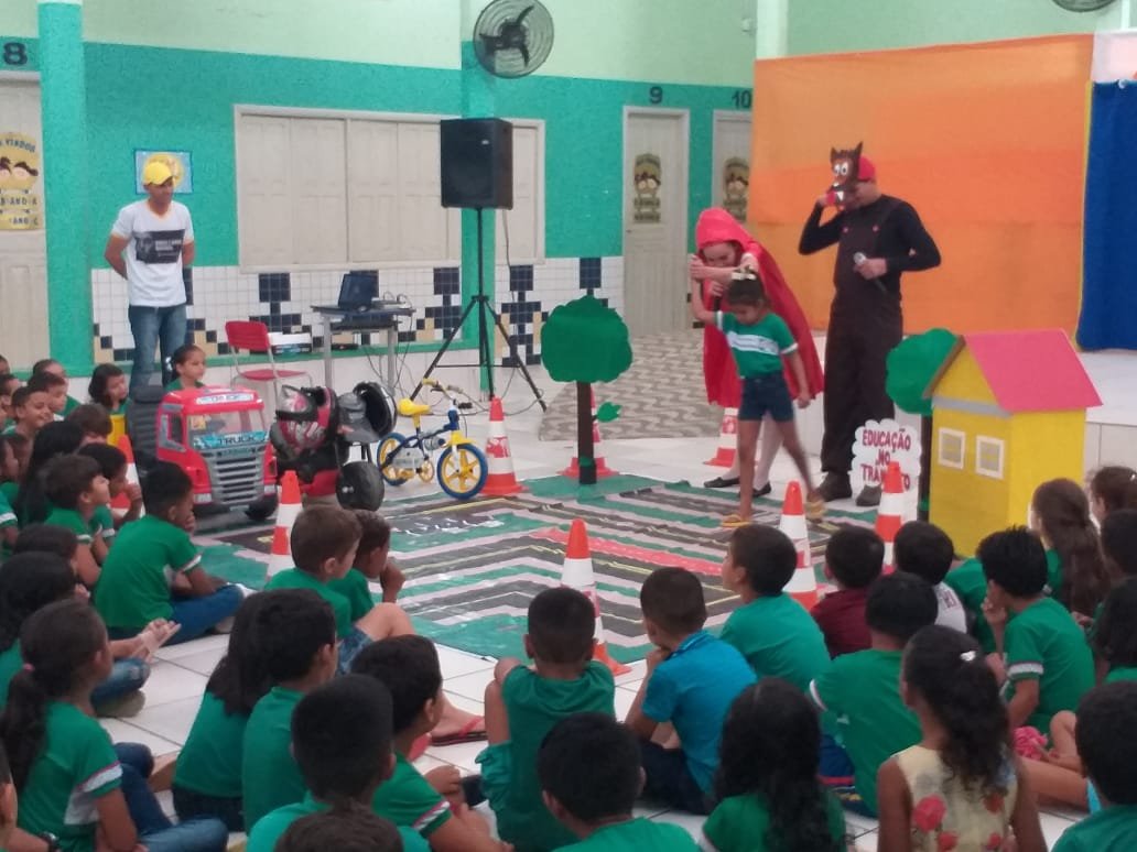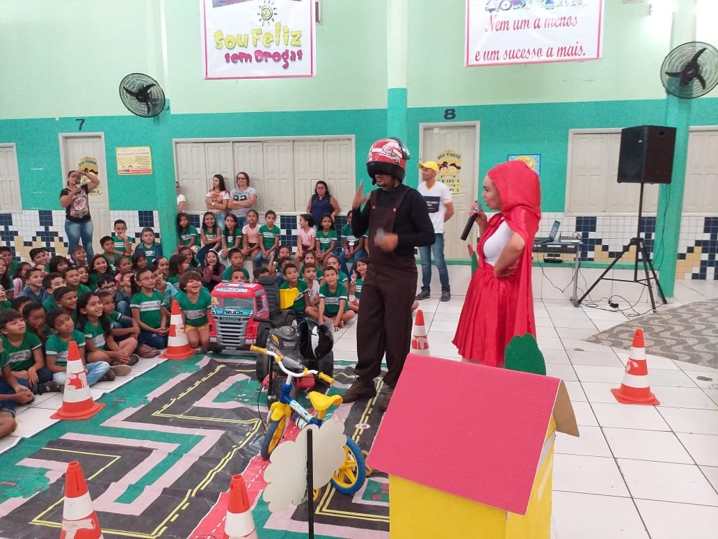 Nesta sexta-feira, 18, os Educadores de Trânsito ministraram orientações de trânsito na Escola Municipal José Augusto de Araújo, através de teatro.