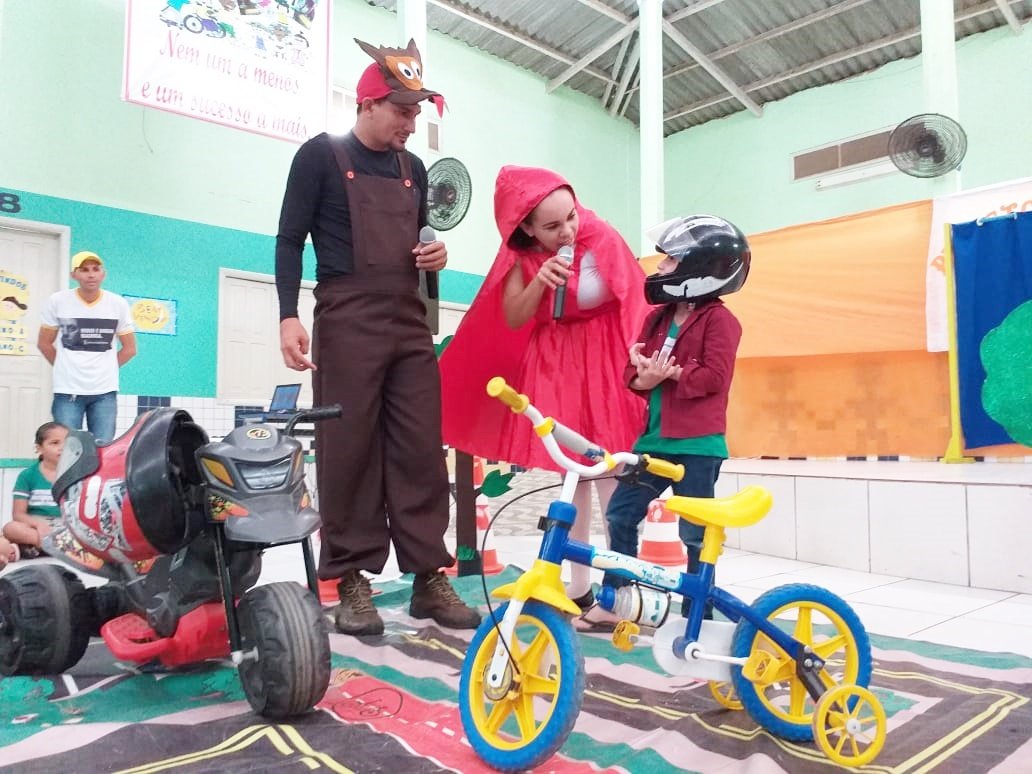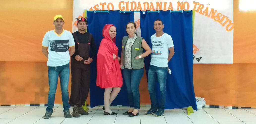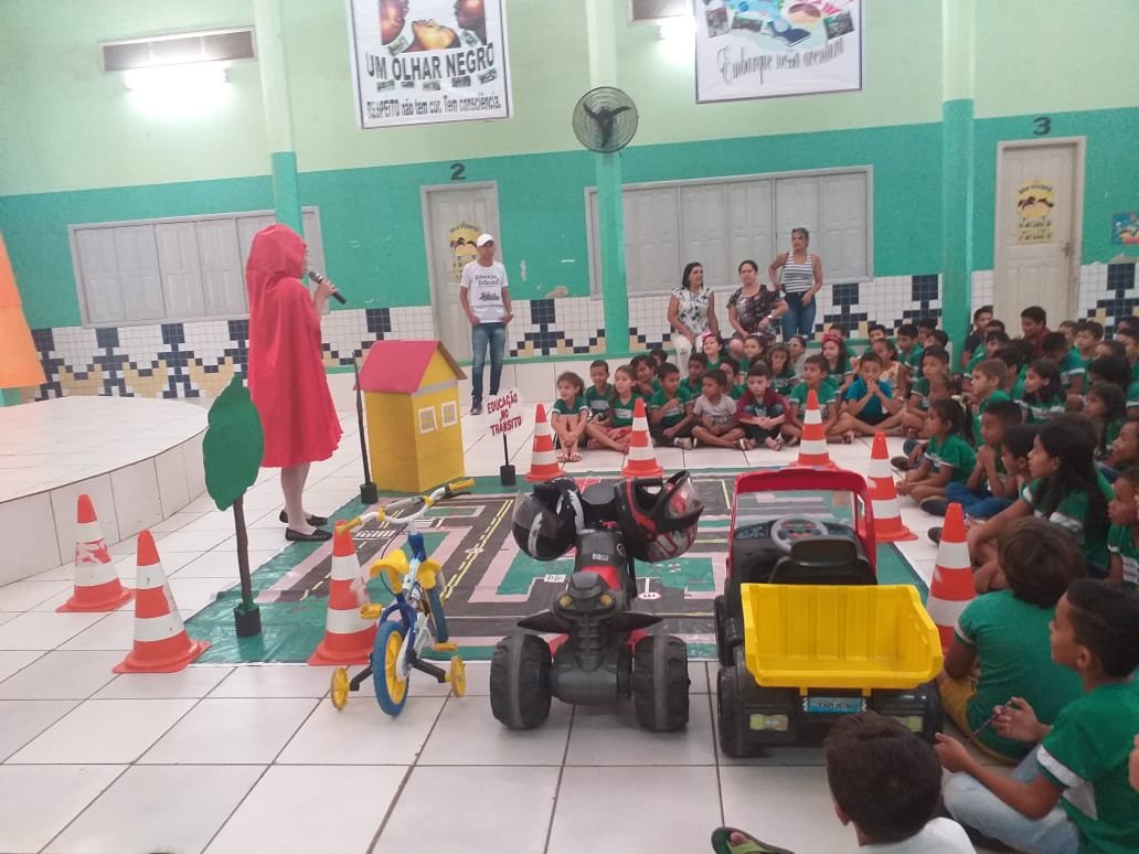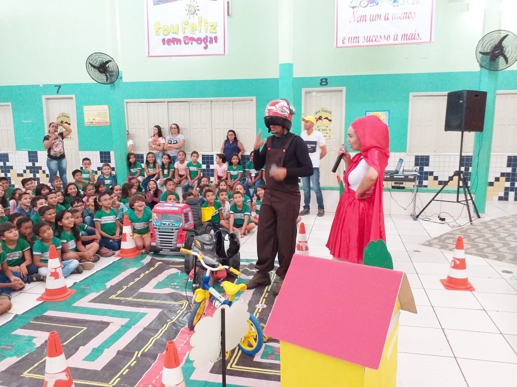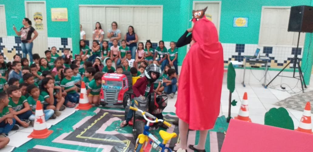 Nesta sexta-feira, 18, os Educadores de Trânsito ministraram orientações de trânsito na Escola Municipal José Augusto de Araújo, através de teatro.
