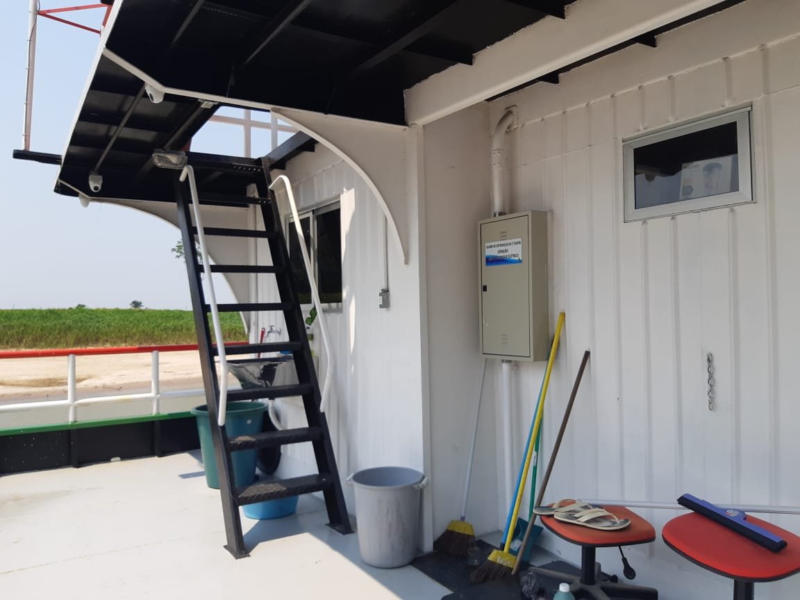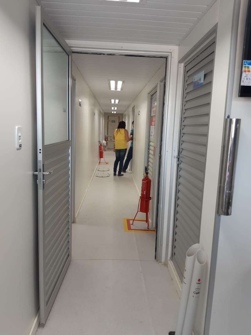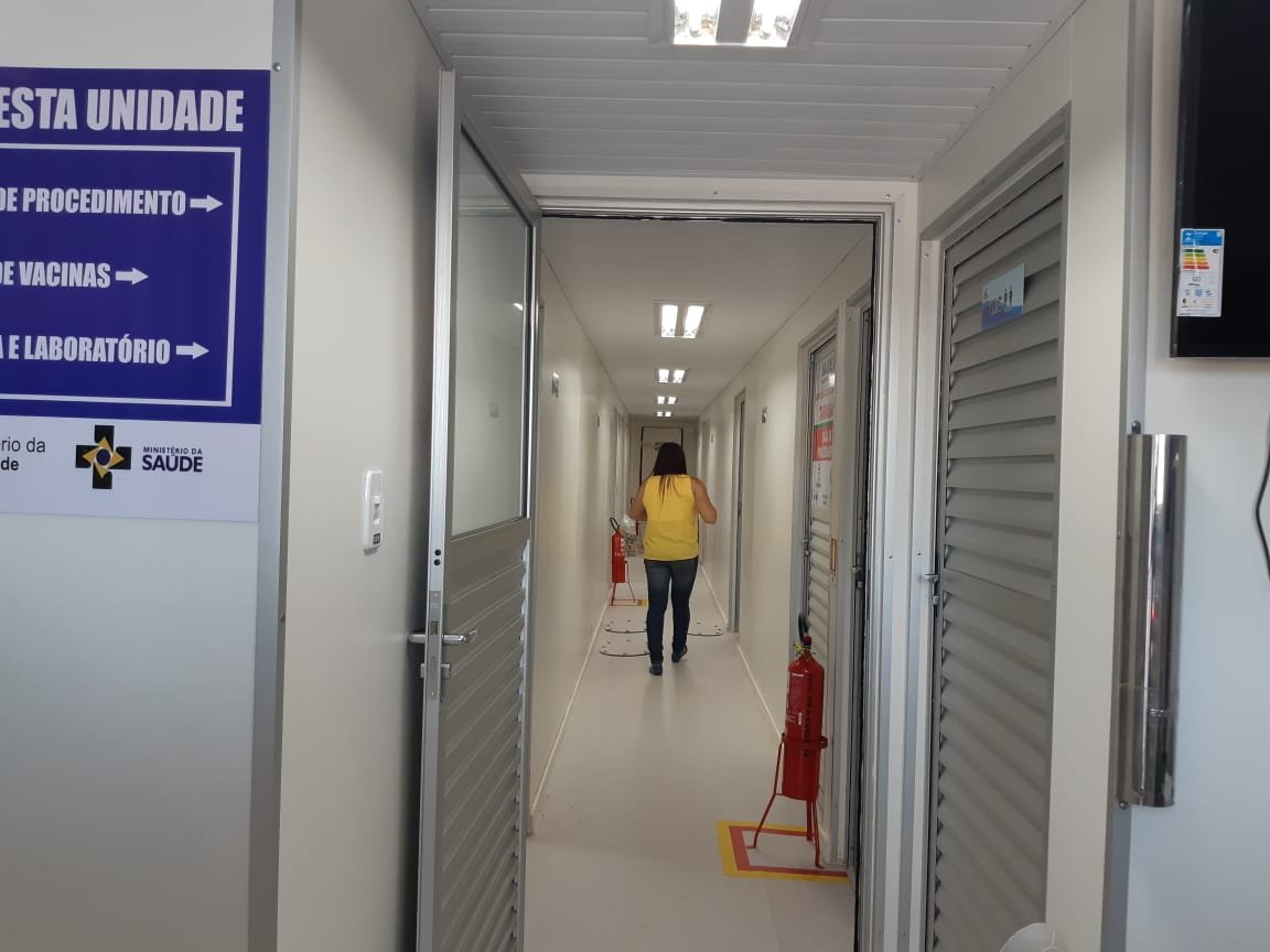 Eficiente, a equipe responsável pela embarcação trabalha antecipadamente nos últimos detalhes antes do funcionamento, como limpeza geral, rede elétrica, instalação de kits de informática em todos os consultórios, e organização de equipamentos.