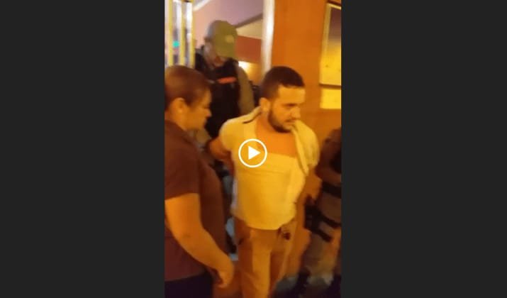 Neste momento, a esposa do empresário, que estava do lado de fora, começou a gravar toda a ação. Nas imagens, é possível ver o mesmo sendo algemado dentro do bar, e sendo levado para fora pelos policias. A mulher que gravou toda cena, também foi presa. Assista: