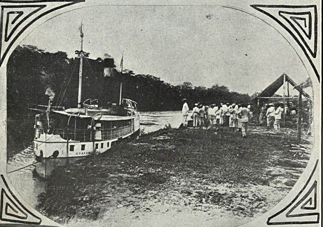 Vapor Guanabara no porto do seringal Guanabara de Avelino Medeiros. Fon-Fon, 8 de novembro de 1913, Ano VII, N.45 – FBN