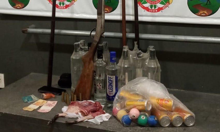 No local, também foi encontrada uma arma de fogo, munição e carne de caça. A denúncia do funcionamento do bar foi feita aos homens do Pelotão Ambiental e Grupamento de Operações Especiais (COE).