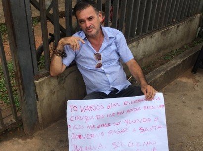 A imagem é o retrato do desespero de um filho que teme a morte do pai. Na manhã desta quarta-feira (6) Francisco Cavalcante Souza, decidiu se acorrentar em frente ao Pronto Socorro de Rio Branco como forma de chamar a atenção do Poder Público para situação do pai.