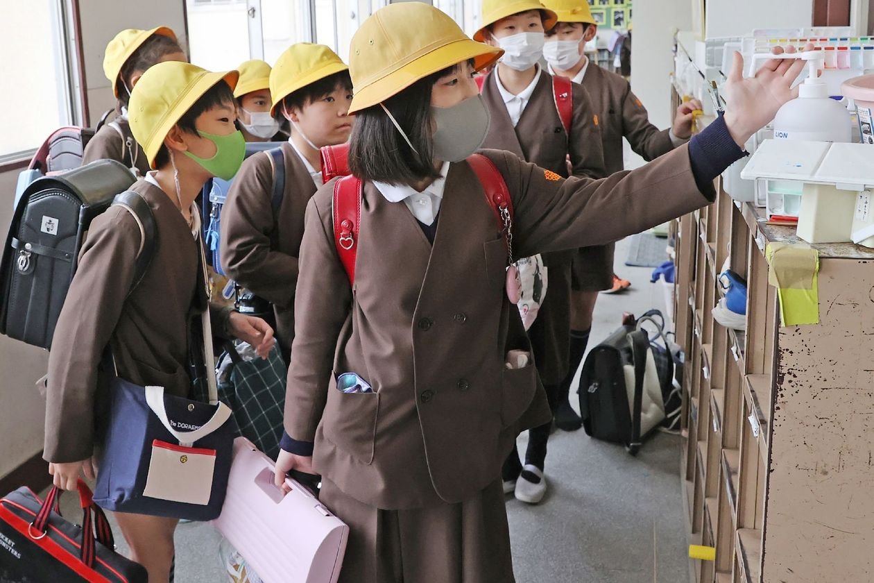 Foto: Estudantes fizeram fila para desinfetante em Osaka, no Japão, na sexta-feira. O primeiro ministro Shinzo Abe pediu que todas as escolas fechassem para o mês de março. FOTO: JIJI PRESS / AGENCE FRANCE-PRESSE / GETTY IMAGES.