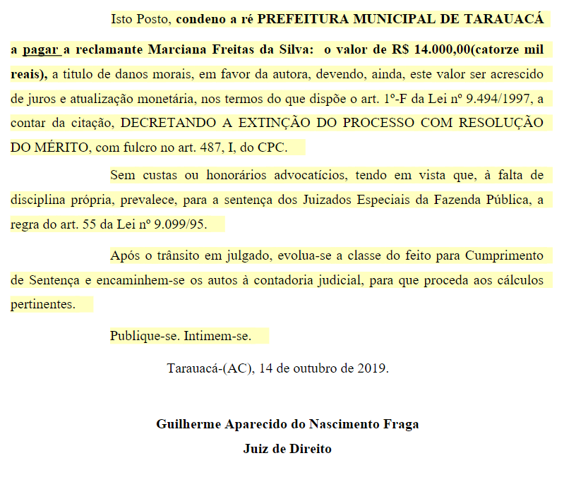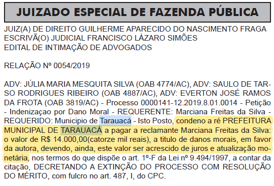 Ciclista que se machucou após cair em buraco na rua receberá indenização de R$ 14 mil. M. F. da S. ajuizou o processo nº. 0000141-12.2019.8.01.0014 contra a Prefeitura de Tarauacá, que ainda poderá recorrer da sentença com recurso de apelação.