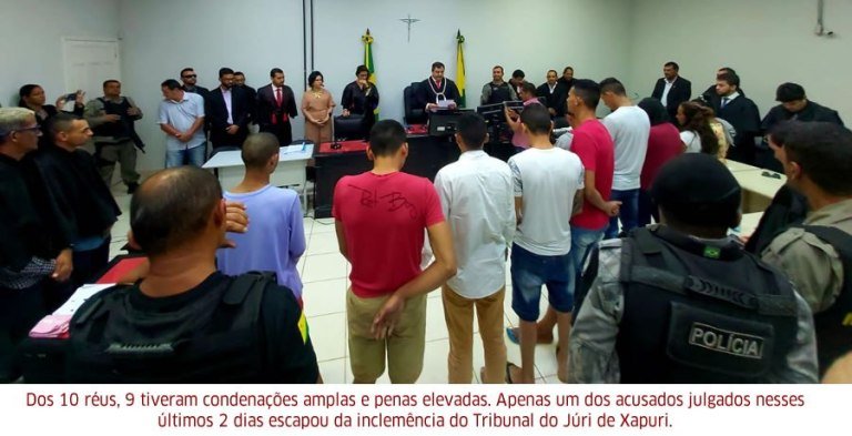 No fim, o Corpo de Jurados acolheu a denúncia do Ministério Público quase que na totalidade dos delitos imputados. Dos 10 réus, 9 tiveram condenações amplas e penas elevadas. Apenas um dos acusados julgados nesses últimos 2 dias escapou da inclemência do Tribunal do Júri de Xapuri.
