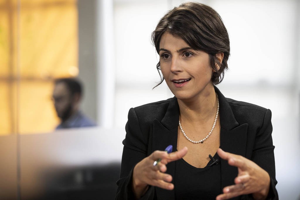 Foto: Manuela D’Ávila fala sobre propostas durante entrevista ao TV Folha – Adriano Vizoni – 23.abr.2018/Folhapress.