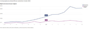 O número de novos registros para colecionadores, caçadores e atiradores desportivos, dados pelo Exército, também subiu. Em 2012, foram 27.549 e, em 2017, 57.886. No total, hoje, são mais de meio milhão de armas nas mãos de civis: 619.604.