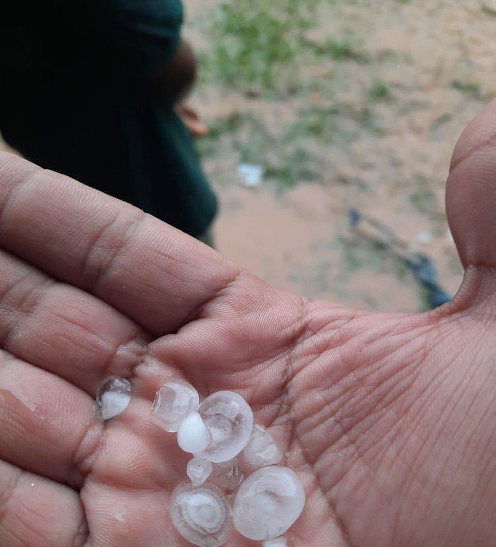 Por volta das 13h, a chuva começou e depois perceberam que o barulho estava diferente. “Depois de 10 minuto que começou a chover, o barulho foi ficando mais forte e aí percebemos que era granizo. A chuva estava forte e demorou cerca de uma hora e meia”, conta.