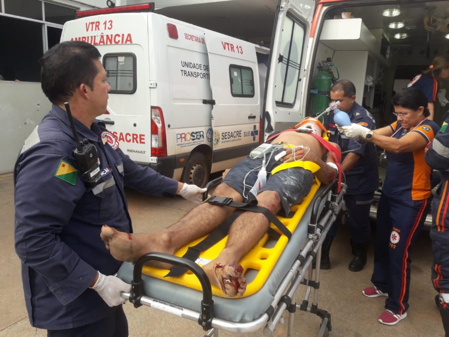 O motociclista ficou em estado de saúde grave e foi necessário acionar a viatura de suporte avançado do Samu que o conduziu ao Pronto Socorro da capital. De acordo com a Médica do Samu, o paciente sofreu traumas no peito e abdômen gerando hemorragia interna. O estado de saúde de Douglas é gravíssimo.