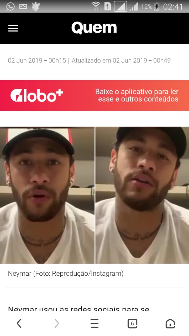 Neymar confirmou ter se envolvido com a suposta vítima, mas garante que a relação foi consensual: “O que aconteceu foi uma relação entre homem e mulher, dentro de quatro paredes, algo que acontece com todo casal e no dia seguinte não aconteceu nada demais, a gente continuou trocando mensagem, ela me pediu uma lembrança ao filho e eu ia levar. Agora fui pego de surpresa”, continuou.