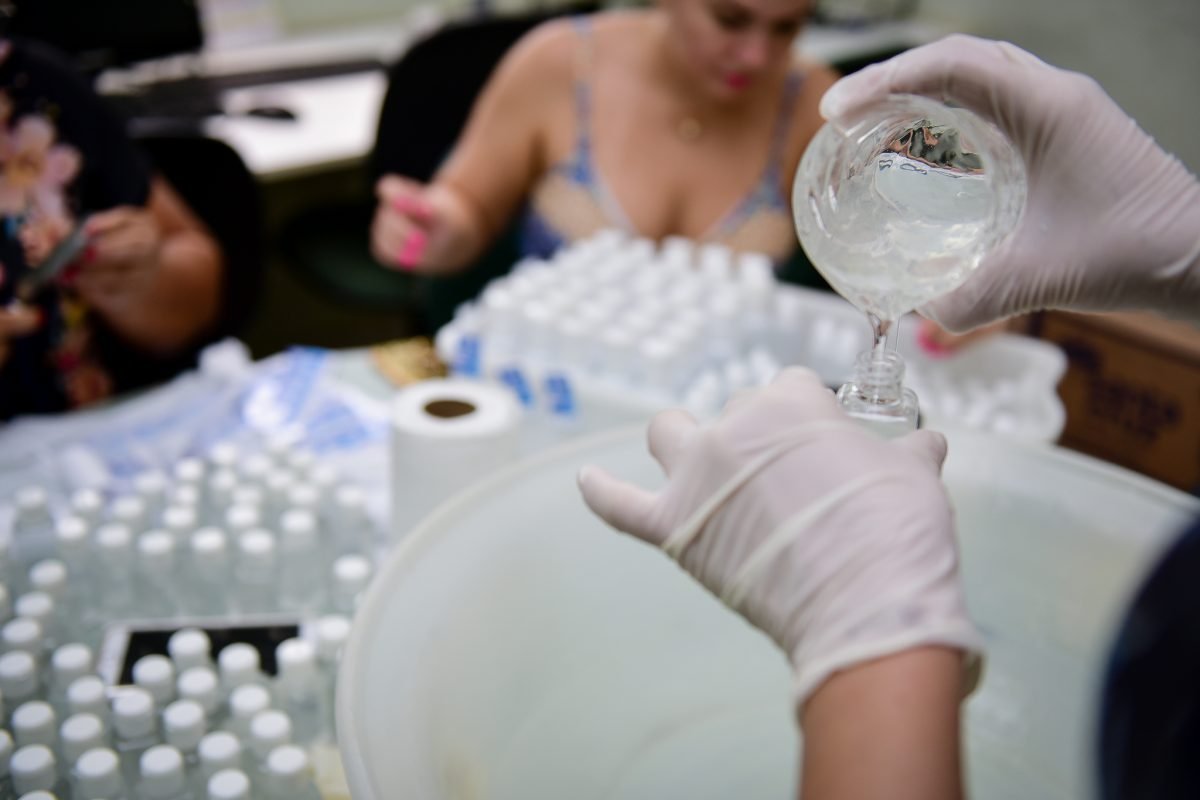 Foto: Processo de produção do álcool em gel, produzido pela Funtac Foto: Júnior Aguiar.