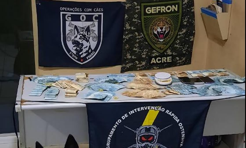 O dinheiro, uma quantia de quase R$ 148 mil, foi encontrado distribuído em duas sacolas, escondido junto ao teto, na parte superior do veículo. Perguntados sobre a procedência, a dupla relatou que estaria indo entregar a quantia como pagamento da venda de aproximadamente 20 kg de produto entorpecente, entregues na capital, Rio Branco e que o restante do dinheiro, estaria na casa de um homem chamado Jorge.