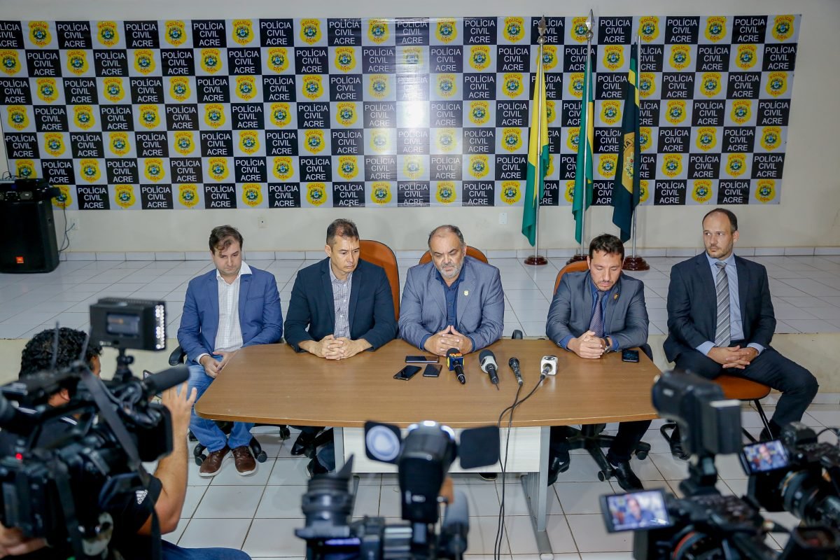 No final da manhã, o delegado-geral da Polícia Civil, Henrique Maciel, se reuniu com o Secretário de Justiça e Segurança Pública (Sejusp), Paulo Cézar Rocha dos Santos, que representou o governador Gladson Cameli, com o delegado da Decor, Alcino Junior, o Diretor de Inteligência da Polícia Civil, delegado Pedro Buzzolin, e o promotor de Justiça, Antônio Alcestes, representando o Ministério Público, para falar com a imprensa sobre a operação.