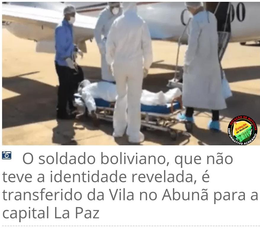 O soldado boliviano, que não teve a identidade revelada, é transferido da Vila no Abunã para a capital La Paz