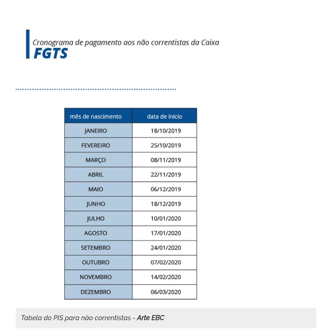Para aqueles que não têm conta na Caixa, o calendário começa no dia 18 de outubro, para os nascidos em janeiro, e vai até 6 de março de 2020, para os nascidos em dezembro