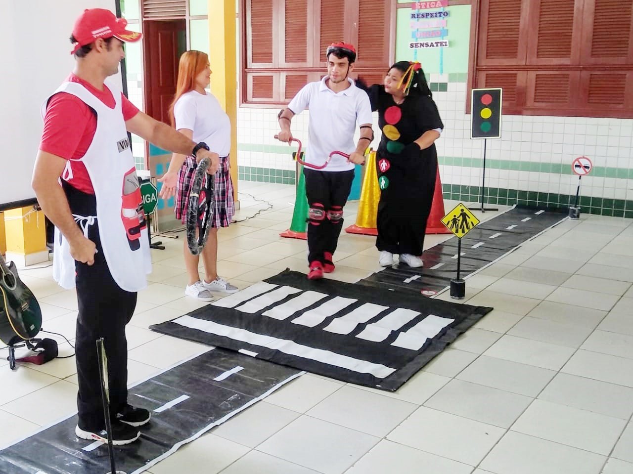 A equipe do DETRAN é composta pelos Educadores de Trânsito Oyama de Melo e Silva Castro, Rafael Silva dos Santos, Claudivam Cordeiro da Silva, Francisco Roberval Loredo Gomes, Saliane Fraga dos Santos e Greyci Santos Carioca.