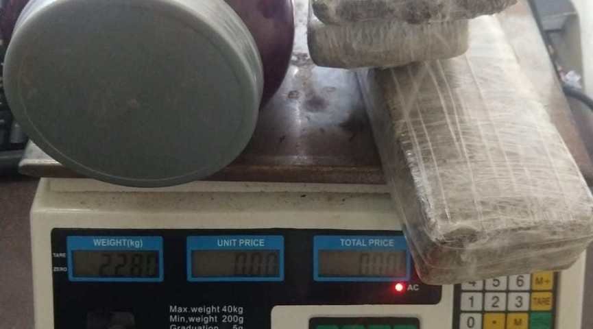 Policiais do 5º Batalhão da Polícia Militar apreenderam mais de dois quilos de maconha na noite deste domingo (11).