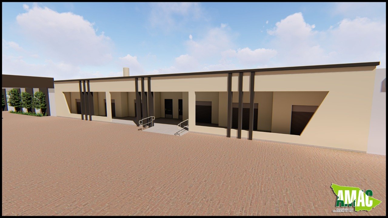 – o banheiro para o público existente, será reformulado e ampliado, assim como a lanchonete existente, com nova cobertura de estrutura metálica e recuperação total do seu interior.