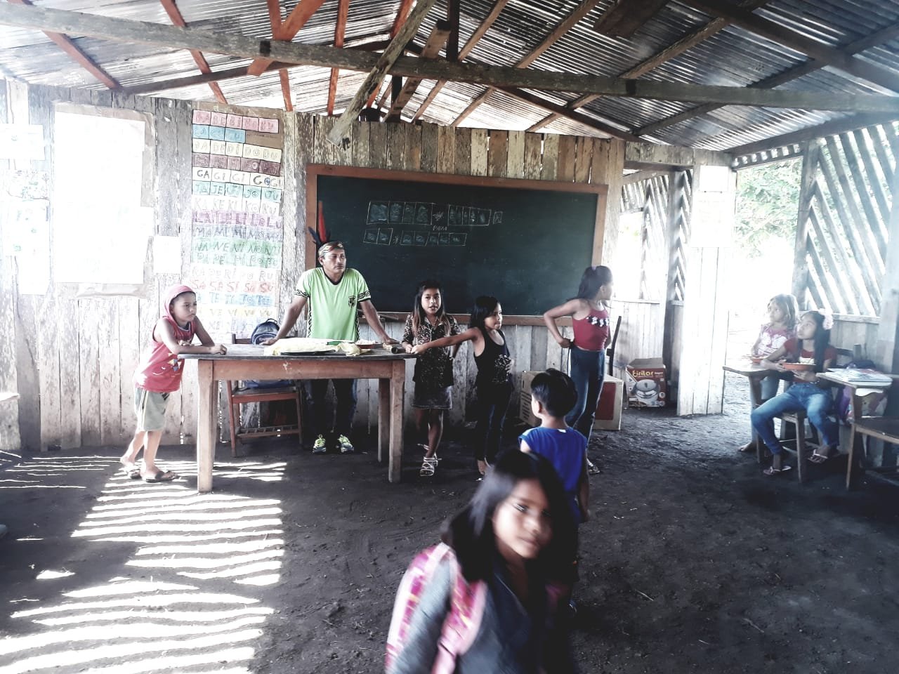 Localizada na aldeia São Francisco, a Escola Infantil Francisco Barbosa Hunikui, enfrenta dias difíceis. O relato do líder indígena Rui, Presidente da Associação Indígena, filho do cacique, que também é professor, é impressionte sobre o local: “Há absoluta ausência de saneamento básico e falta de água. Com a enchente do rio, o poço desapareceu, a única fonte de água fica há 30 minutos de distância da aldeia“.