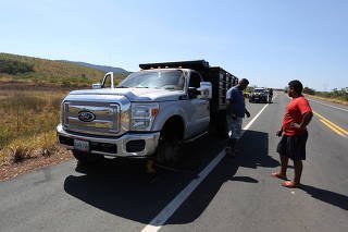 Dois caminhões colombianos foram queimados em pontes ligando Cúcuta, na Colômbia, a Ureña, na Venezuela. Eles estavam em uma caravana de quatro veículos, de um total de 14, que tentaram seguir viagem depois que os manifestantes romperam uma barreira da Guarda Nacional Venezuelana.