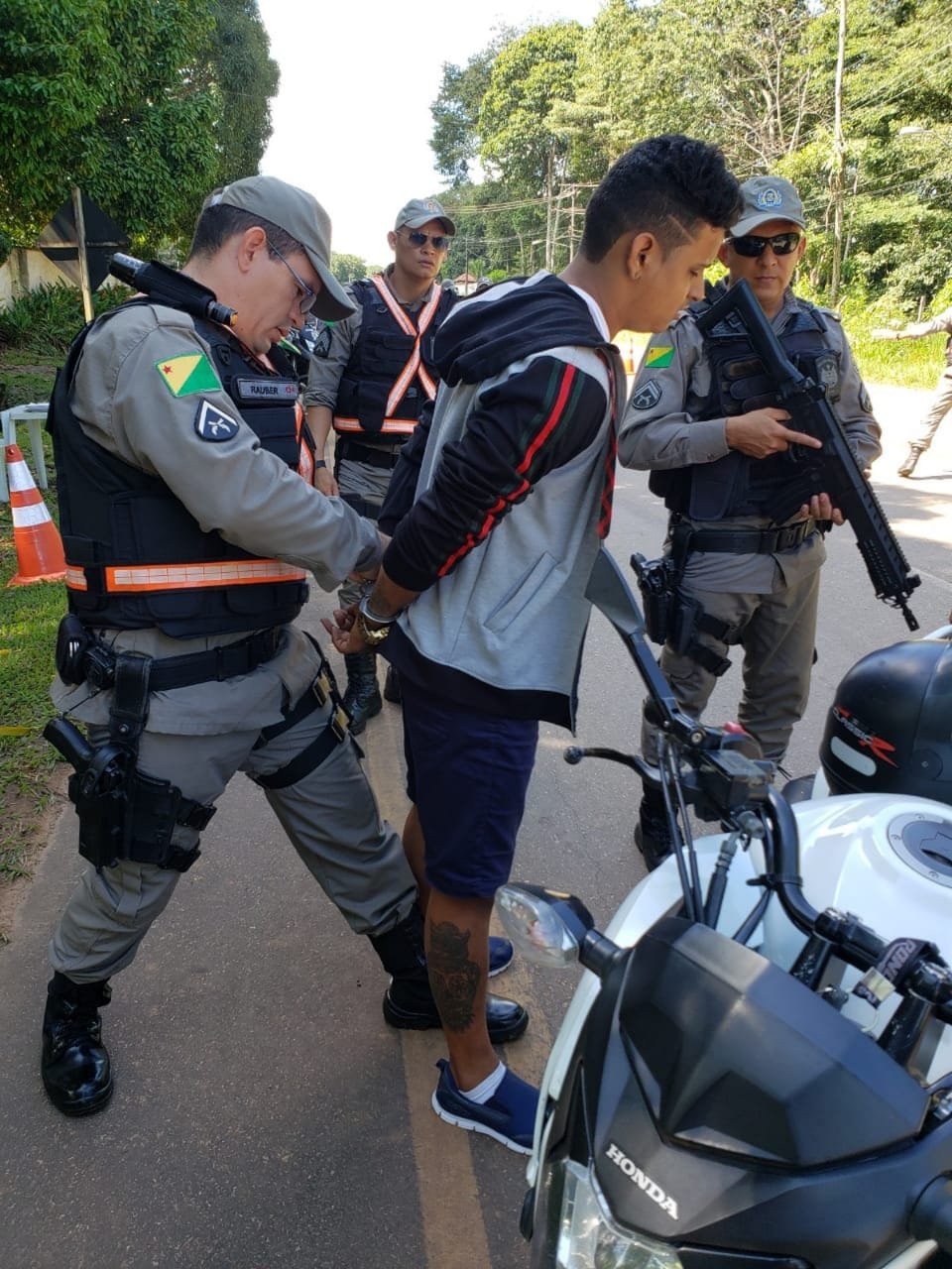 A tenente da PM-AC Priscila Siqueira contou que as equipes faziam abordagens preventivas no km 17 da Rodovia AC-40, quando interceptaram o suspeito. Ele estava em uma motocicleta, que não tem restrição de furto ou roubo.