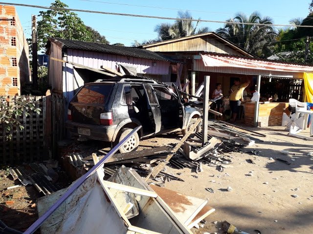 Um acidente de trânsito foi registrado na tarde deste domingo, 24, na entrada do Bairro Eugênio Areal (Invasão da Xiburema). Um carro Fiat Uno, cor preta, invadiu parte de uma casa, destruindo-a quase que completamente.