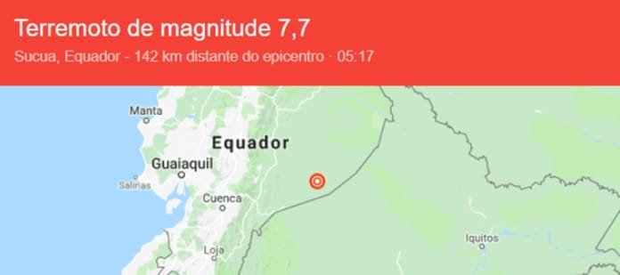 Um terremoto na cidade de Sucua, no Equador, localizada a 142 km distante do epicentro, registrou nas primeiras horas da manhã desta sexta-feira (22), um terremoto de magnitude 7,7. O fato, acabou sendo registrado por alguns moradores do Acre, que disseram sentir a terra tremer por cerca de 6 segundos.