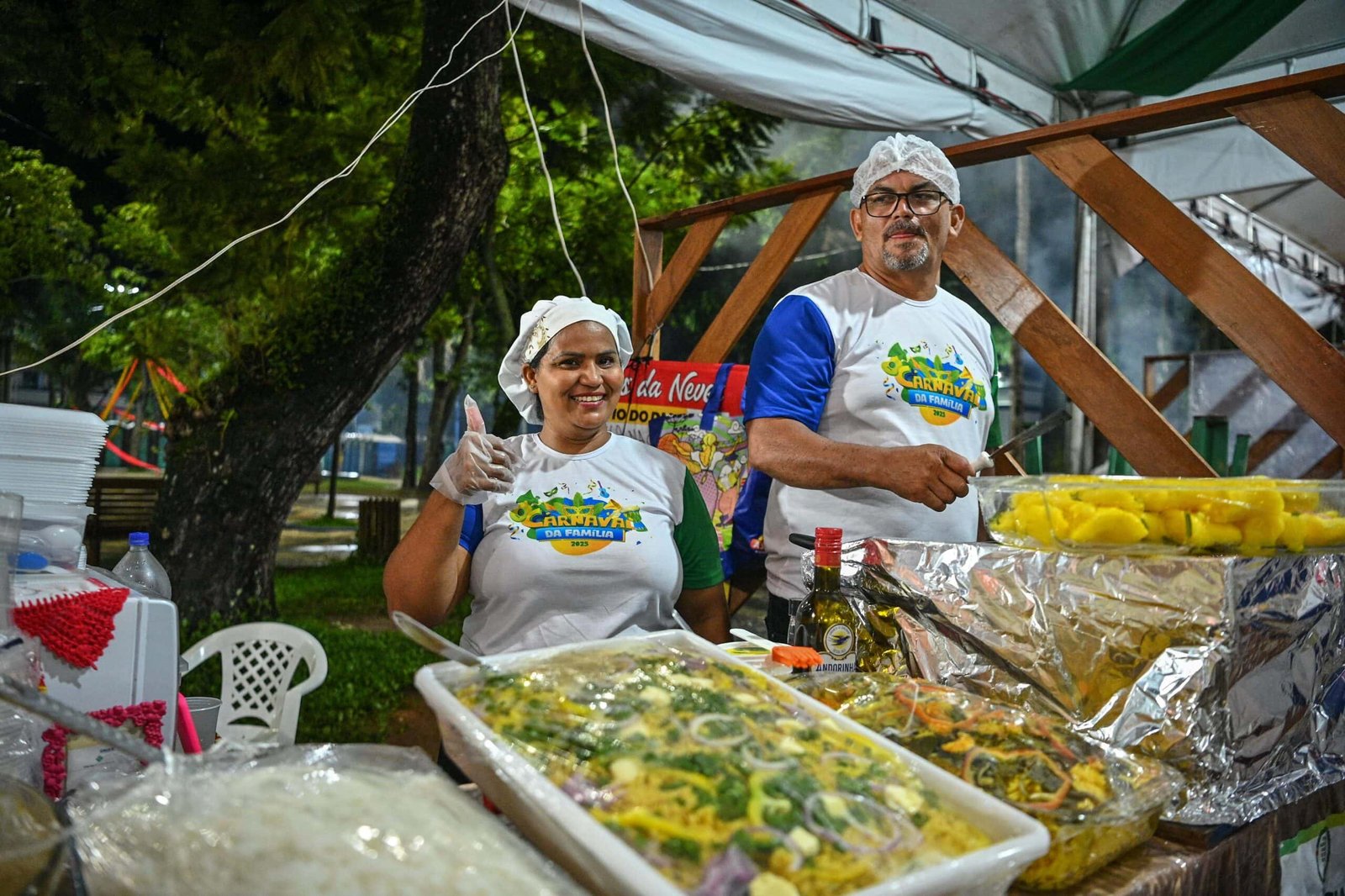 Comercializando lanches e bebidas, o microempreendedor Júnior Lima participou do Carnaval da Família vendendo produtos amados por acreanos, como bananinhas fritas, doces e salgadas, além de mandioquinha. Trabalhando no ramo há anos, Lima valoriza o espaço promovido: “Com a concentração de pessoas aqui no Carnaval conseguimos realizar boas vendas, trabalhando num ambiente seguro e bem organizado”.