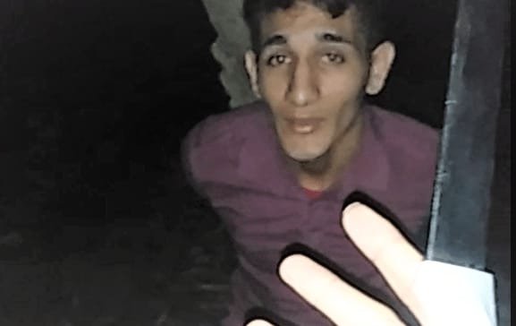 A mão de um segundo homem aparece segurando uma faca e falando o nome de uma facção criminosa.