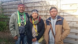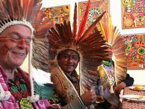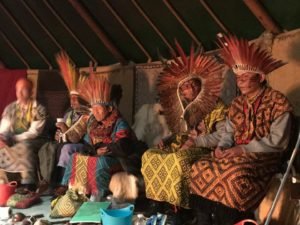 Nasso e os seus irmãos indígenas participam do Festival Xamanismo, na França.